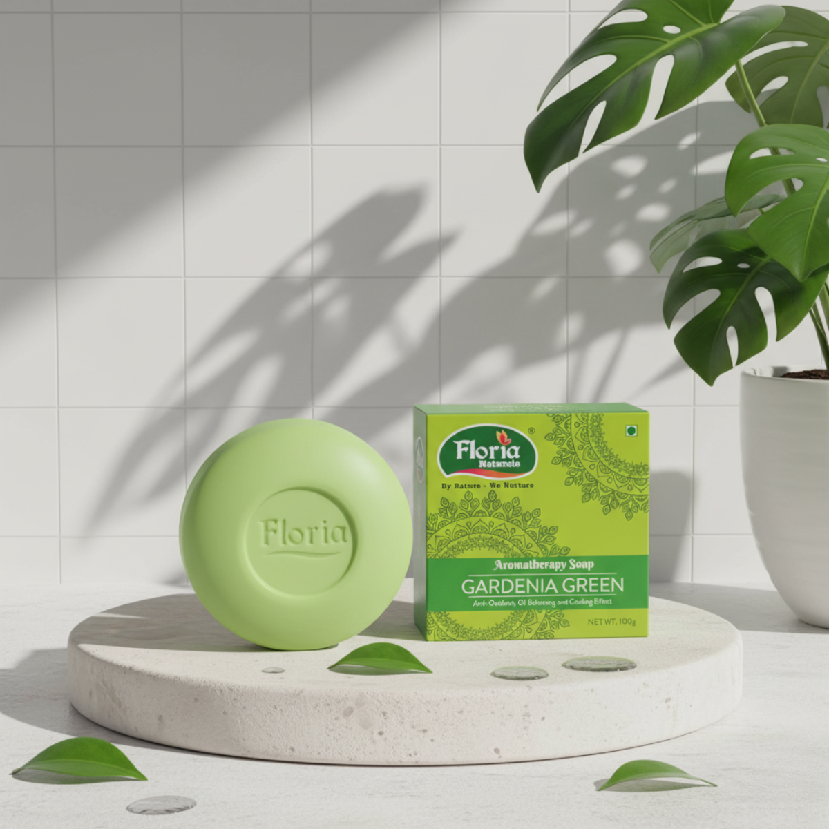 Experience the profound luxury of Floria Naturals Gardenia Green Soap, a bar steeped in the holistic wisdom of Indian botanicals. This is not a mere soap, but a Vedic preparation—meticulously handcrafted with an unparalleled 82% TFM from a base of 100% pure vegetable oils.